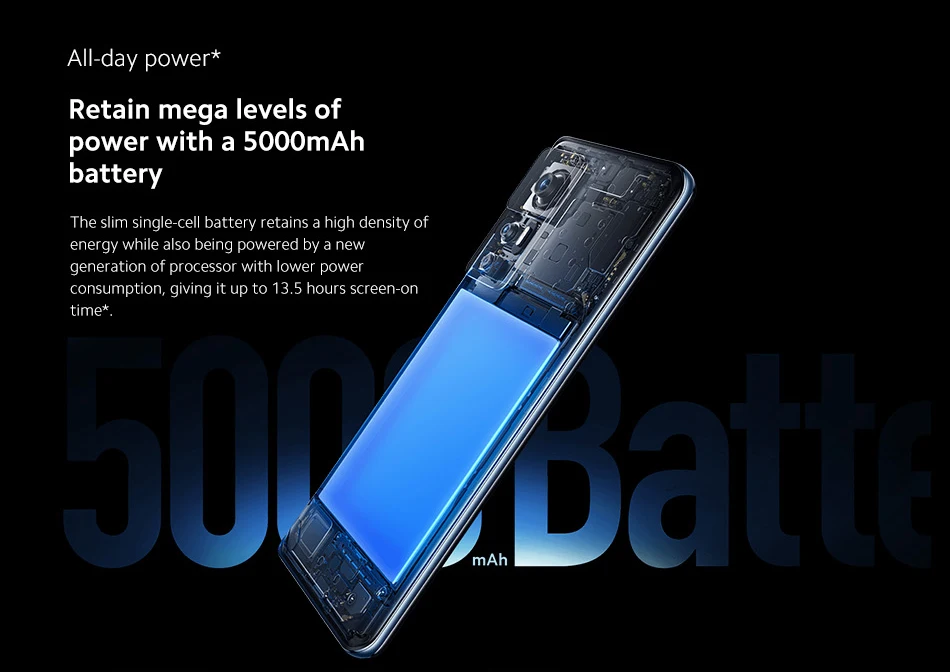 All-day power*, Retain mega levels of power with a 5000mAh battery